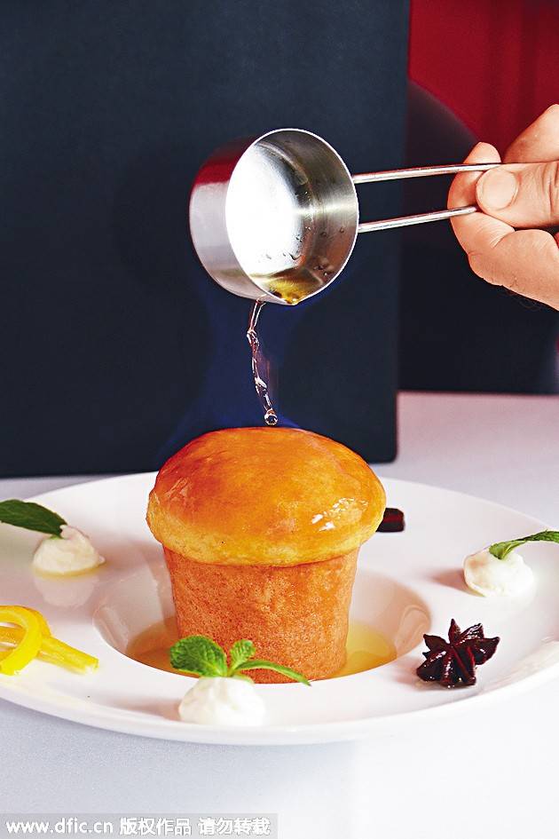 烈酒倒上蛋糕燃燒,酒香可平衡法式甜品的濃甜。