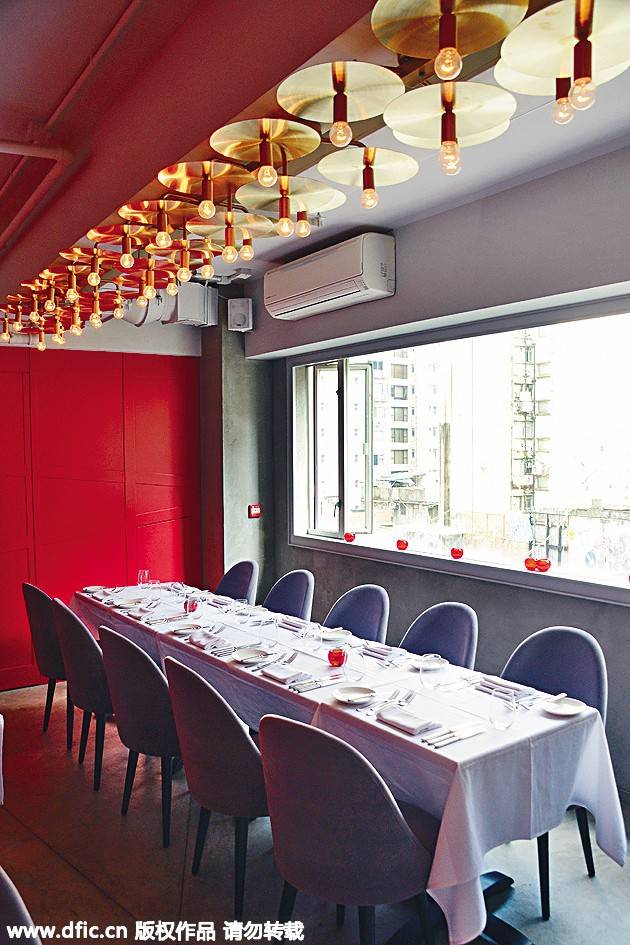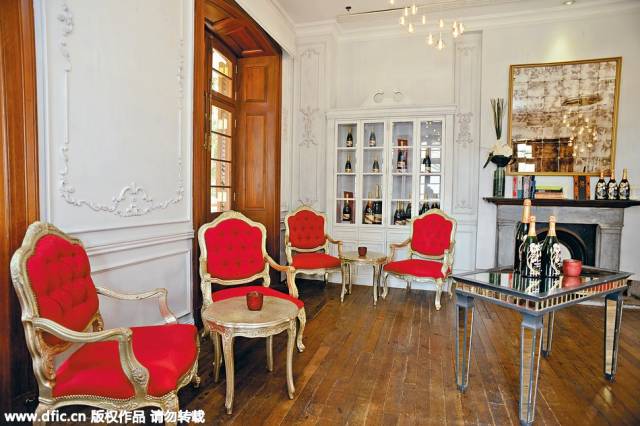 前身為水警總部的海利公館,開設了一家Champagne Gallery,原址本為活動室,作開會或宴會之用,由著名設計師Laura Cheung重新打造改建。在澳洲出生的Laura,于英國倫敦蘇富比藝術學院深造,擅長設計富地方色彩及懷舊味道的家具。她的外婆是中國景泰藍的工藝專家,爺爺為制造中國紅木家具的匠人,她設計的Champagne Gallery會否充滿中國風格?入內一看,卻洋溢英式的華美感覺。Laura表示:“這里為殖民地時代建筑,我想保留英式風情,地板有百年歷史,不會拆去,椅子翻新釘上紅布,椅腳上金漆,變成華麗的宮廷格調。”天花裝上不規則的圓球燈飾,就如香檳氣泡,為這里帶來新舊交替的現代感。