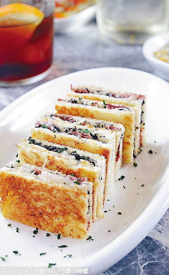 Bikini Sandwich(HK$85)屬經典Tapas,多士夾有芝士、風干火腿及松露醬,層次感豐富