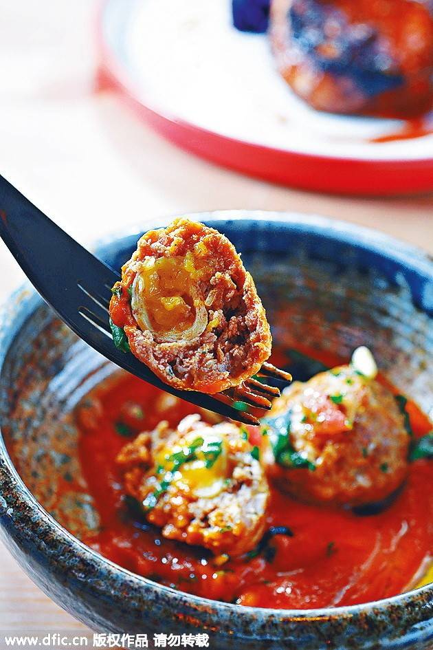 西班牙肉丸釀入鵪鶉蛋,入口香濃不膩。
