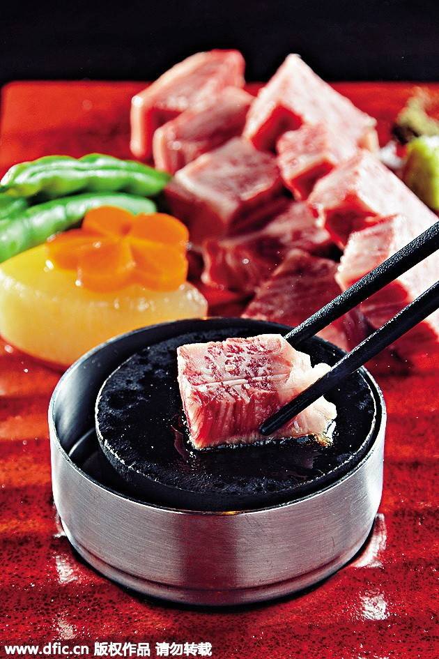 石燒A5黑毛和牛肋眼肉HK$368/100克,客人自行控制和牛生熟度