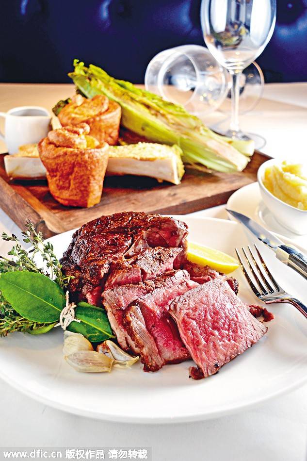 除了散叫菜式,極品牛眼扒二人餐亦為客人帶來新鮮感,Steve選用了美國著名的阿肯色州Creekstone農場肉眼扒,貪其質素穩定,用慢煮方法炮制,正可鎖住肉汁,入口嫩滑多汁。隨牛扒附上蔬菜、芥末牛骨髓及約克布甸,最特別的是芥末牛骨髓,在牛骨髓表面涂上面包糠、芥末,再放入焗爐焗香,享用時可輕挖牛骨髓表面的面包糠,與牛扒同吃,濃郁惹味。