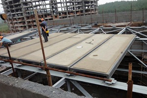 鋼骨架輕型板適用于輸煤棧橋、公共民用等建筑圍護屋面、樓面、墻面。鋼骨架輕型板由輕型鋼骨架、冷拔鋼絲網、BAS改性水泥珍珠巖復合芯材(專有技術)、BAS復合抗滲耐磨涂層(專有技術)組成。鋼骨架輕型板(簡稱“天基板”)集輕質、承重、節能、防火、隔聲、泄爆、抗震等功能于一體,既保持了傳統鋼筋混凝土構件安全度高、使用壽命長的優點,又滿足了現代建筑對輕質、節能、環保的要求,